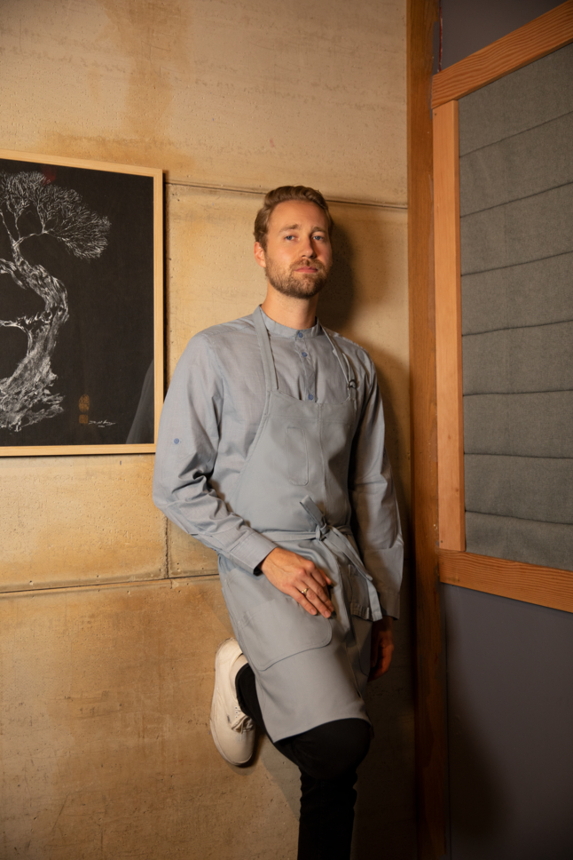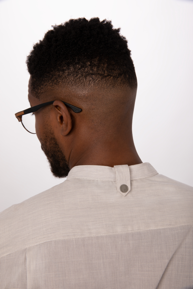 – Banded collar met achterkraag schort-houder – handig voor snelle shifts